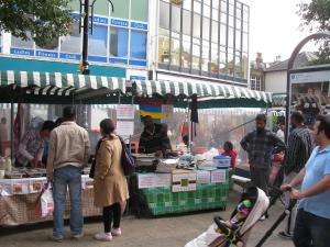 Maybe 5 miles out of Heathrow I passed through the Hounslow town centre, where there's about 5 blocks worth of pedestrian mall, on which were set up all manner of street market stalls. Each one looking more appetizing than the previous, until I came across one selling Mauritanian Lamb Biryani. At that point, my willpower gave up entirely and I just had to stop. Very glad I did! Most excellent.