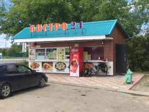 I got back to the highway and made a quick stop at a "Бистро24" for breakfast. These places are amazing. They are found along the highway in every town and are little drive-up kiosks where you can get pretty much anything. Chinese (wontons, fried rice)? Yep. "Traditional" Russian (borshch, pirozhkiy)? Sure. Western (hamburgers, pizza, caesar salad)? You bet. Cappuccino? No problem. There are several different chains that I've seen so far, some are 24h and some not. But basically like a take-out version of a greasy spoon diner. For me, on the bike, this is about as perfect as you can possibly get, because it means I don't have to worry about locking the bike up somewhere, and then worrying about all the stuff on it. And with the number of calories I'm burning through, I'm not worried about a little extra grease.