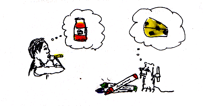 | Richard | "I want juice, the mouse wants cheese. Damn these crayons!" |