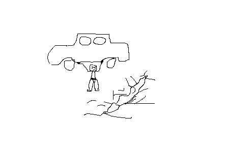 Hoopy Frood's caption for above drawing: "crack makes me angry. you wouldn't like me when i'm angry. watch me pick up this car."