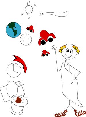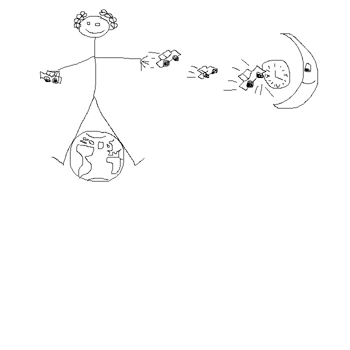Random Monkey's caption for above drawing: "ceaser was so pleased at having gotten rid of the biggest shit in the universe that took 4 hours to do, that he threw giant cars at the moon."