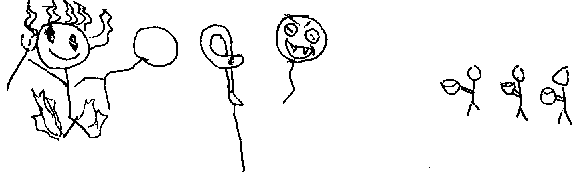 | Aaron | "Fire Clown makes scary balloon animals for hungry children." |