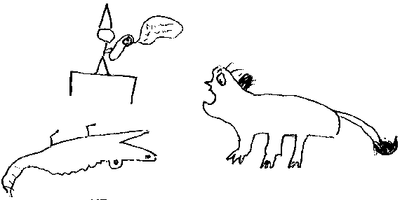 | Michael | "The wizard's speaking submarine sandwich kills the alligator from on high, while the balding lion looks on in horror." |