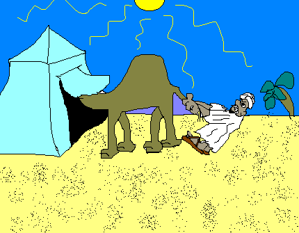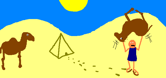 | mrputter | "No matter how many times Ahmed carried her out, kicking and screaming, Bessie the Camel kept insisting on hiding from the midday sun inside the tent." |