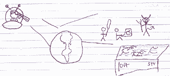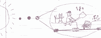 From outer space, humans look like they are playing with paddles and computers at the devil's swim meet.