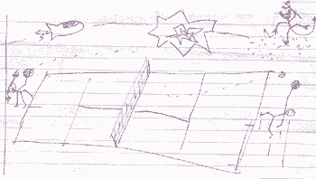 Space aliens flew over teh couple playing tennis and crashed in a ball of fire; when the space craft had disintegrated, the devil danced upon the ashes.