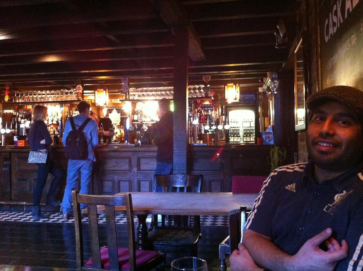 - At the Anchor pub: Hari's pint seems to be empty; oh dear. (And so was mine - time to move on to the next one!)