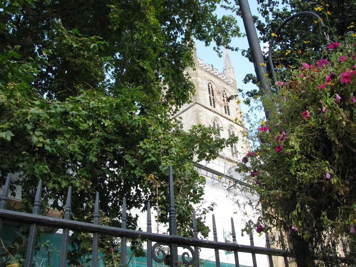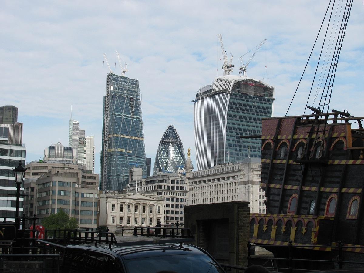 Then on Monday did touristy things down in the city. Mostly a lot of wandering around looking at neat stuff while Hari played tourist guide. Spent some time in the Museum of London, which was interesting enough. Had lunch at Borough Market just over the Thames and I bought a whole pile of things (mostly variants on Parmesan cheese, hee