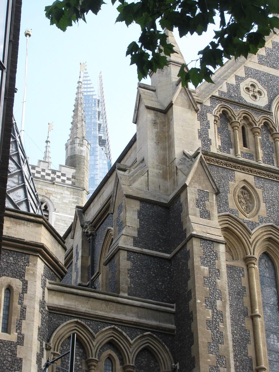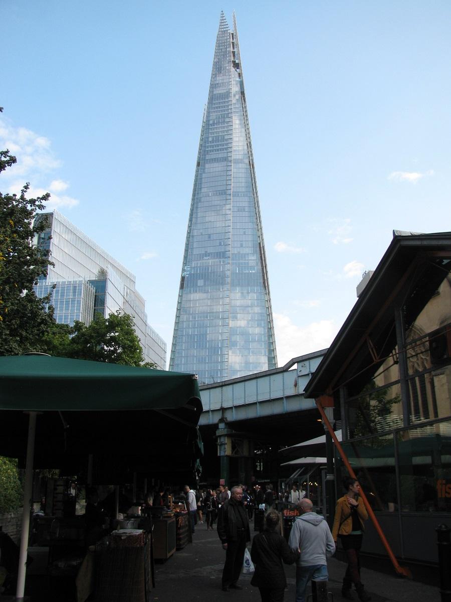 - The Shard looms over Borough Market. (Om nom nom cheese shops.)