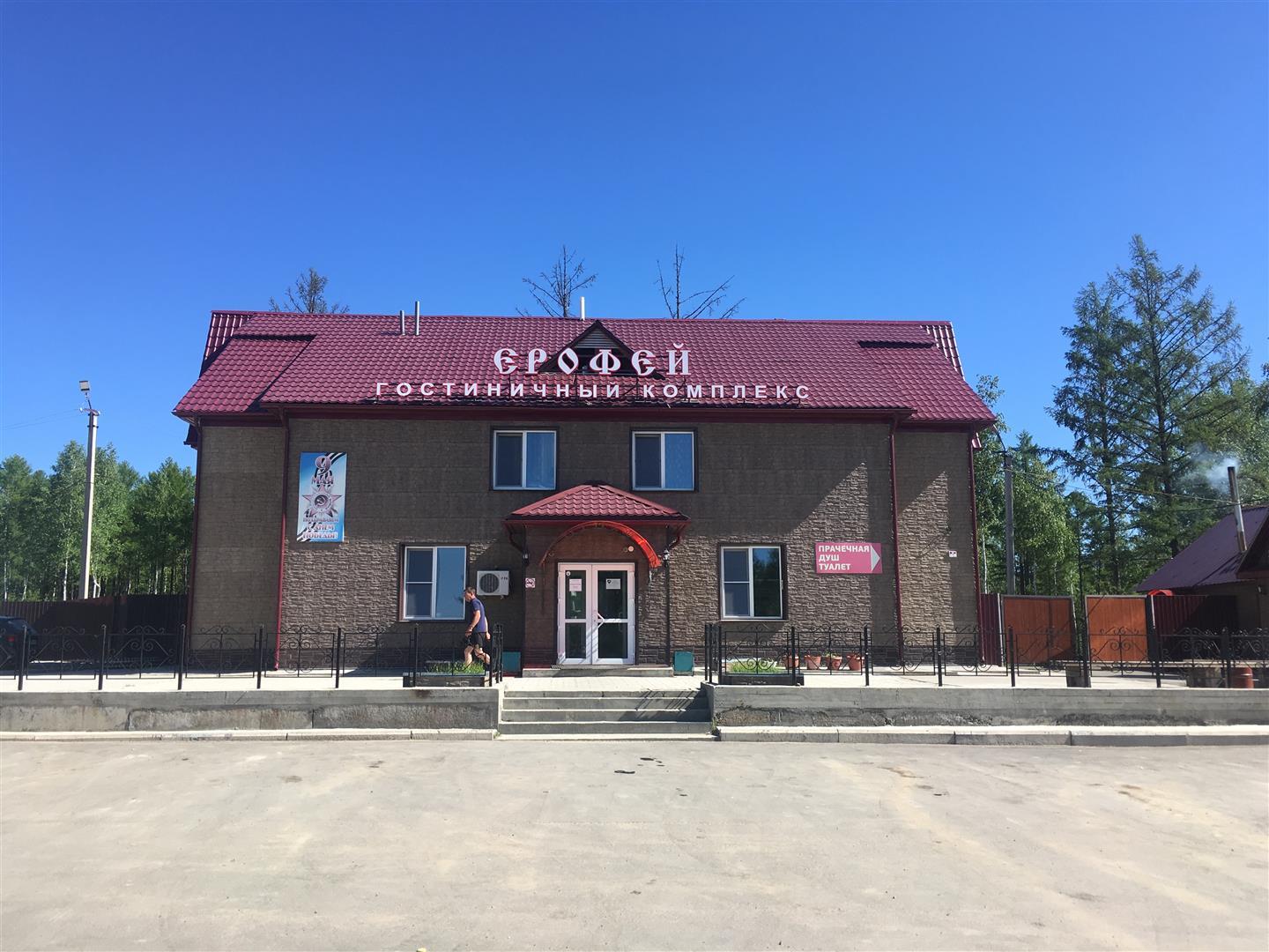 No matter, I was there. The hotel "complex" (because it also held a cafe, store, mechanic shop and bathhouse) Yerofey. Named after the town of Yerofey Pavlovich, a couple km down a side road off to the left; itself named after the explorer Yerofey Pavlovich Khabarov. Yes, that Khabarov -- the same one Khabarovsk is named after. A slightly-bigger place, that latter!