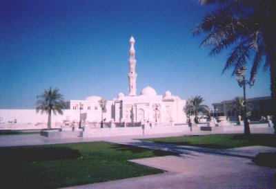 | The campus mosque. At least, the main campus mosque. There are two others (along with numerous prayer rooms) around, but they're smaller and nowhere near as pretty. Engineering 1 on the left, bank / post office / bookstore on right. |