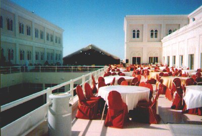 | Speaking of food, we are now in Sharjah, on-campus at AUS. This is the "Ram'adhan Plaza," where during the entire month of Ram'adhan there are big (free!) buffets for the hour after Iftar (sunset). Popular with the students! |