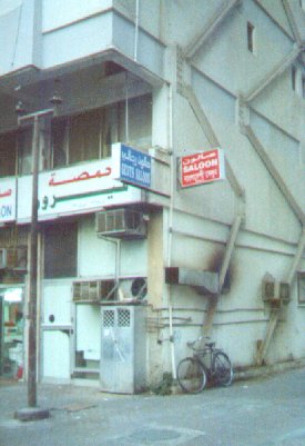 | And another saloon. Two for one, actually (although the blue sign is unfortunately illegible). Yee haw! The many "saloons" are often a source of amusement for newcomers. Illumination comes when one realizes that they are actually hair salons. But when translated into Arabic, the words "saloon" and "salon" are identical. Combine this with the fact that many people here learned English by watching Hollywood movies (often prominently featuring John Wayne and Clint Eastwood) and the source of the confusion is revealed. I especially like them because of the "Wild West" feel they carry, which is extremely appropriate. This place is totally like the Wild West. The bigger your guns, the more you get away with. Except here they call it "wasta." |